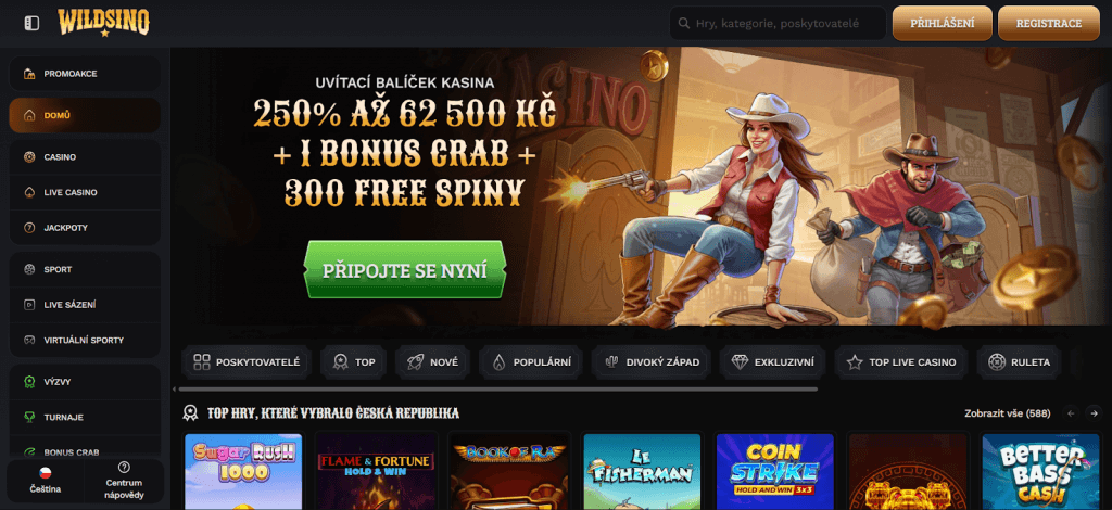 Wildsino mě přeneslo do světa kovbojů a psanců. Celá vizuální identita je velmi konzistentní a online hry casino jsou zde prezentovány s patřičným stylem. Zaujal mě „Bonus Crab“ a sezónní akce jako „Halloween Boom“, které dodávají hře sezónní nádech. Atmosféra salonu a prachu cest je cítit z každého banneru, což dělá z Wildsina skvělé místo pro tematické hraní.
